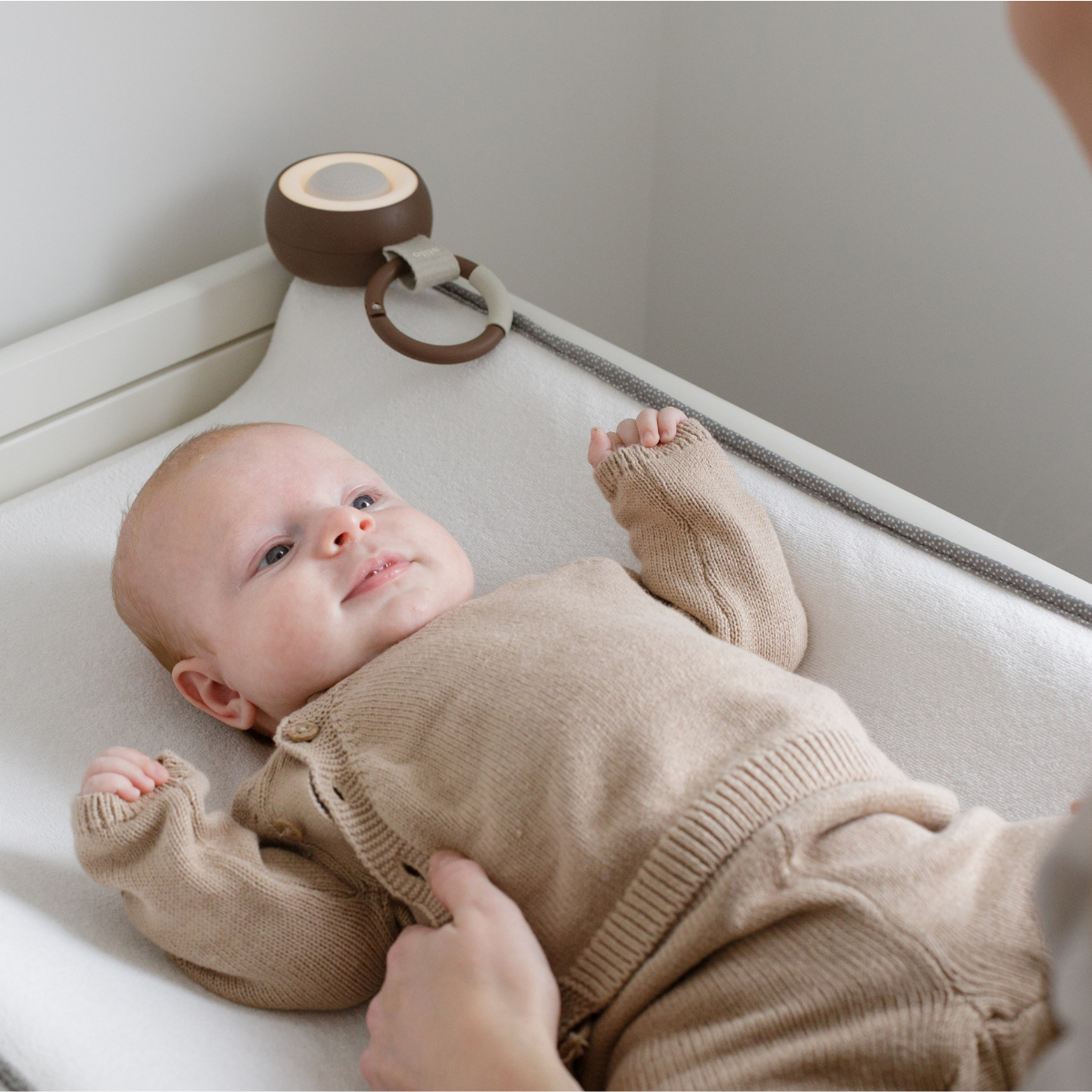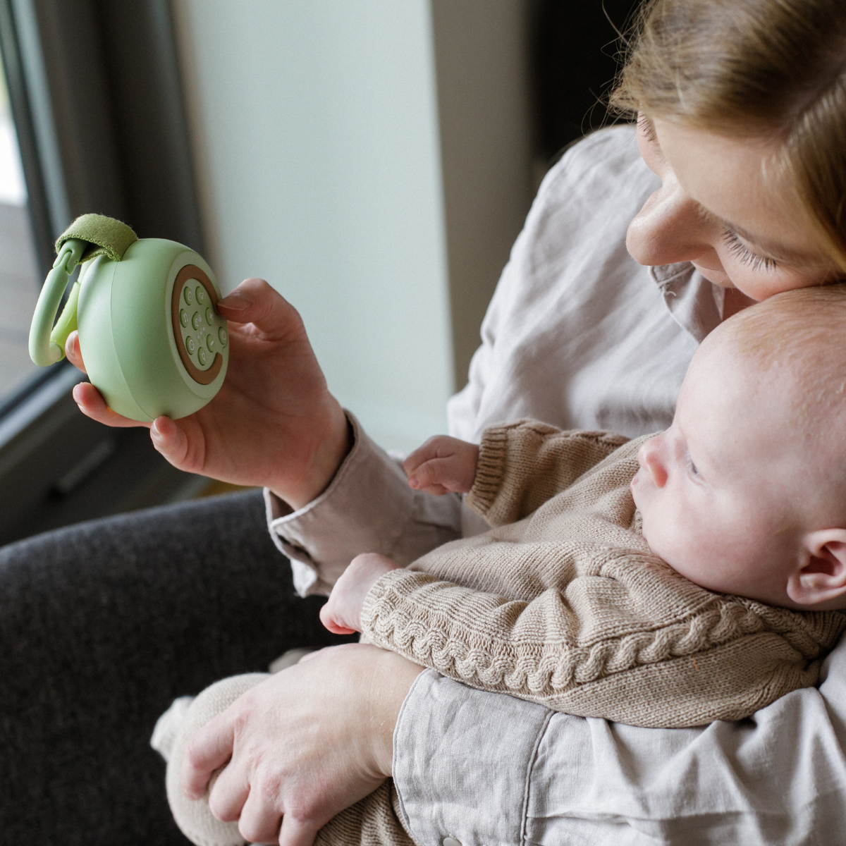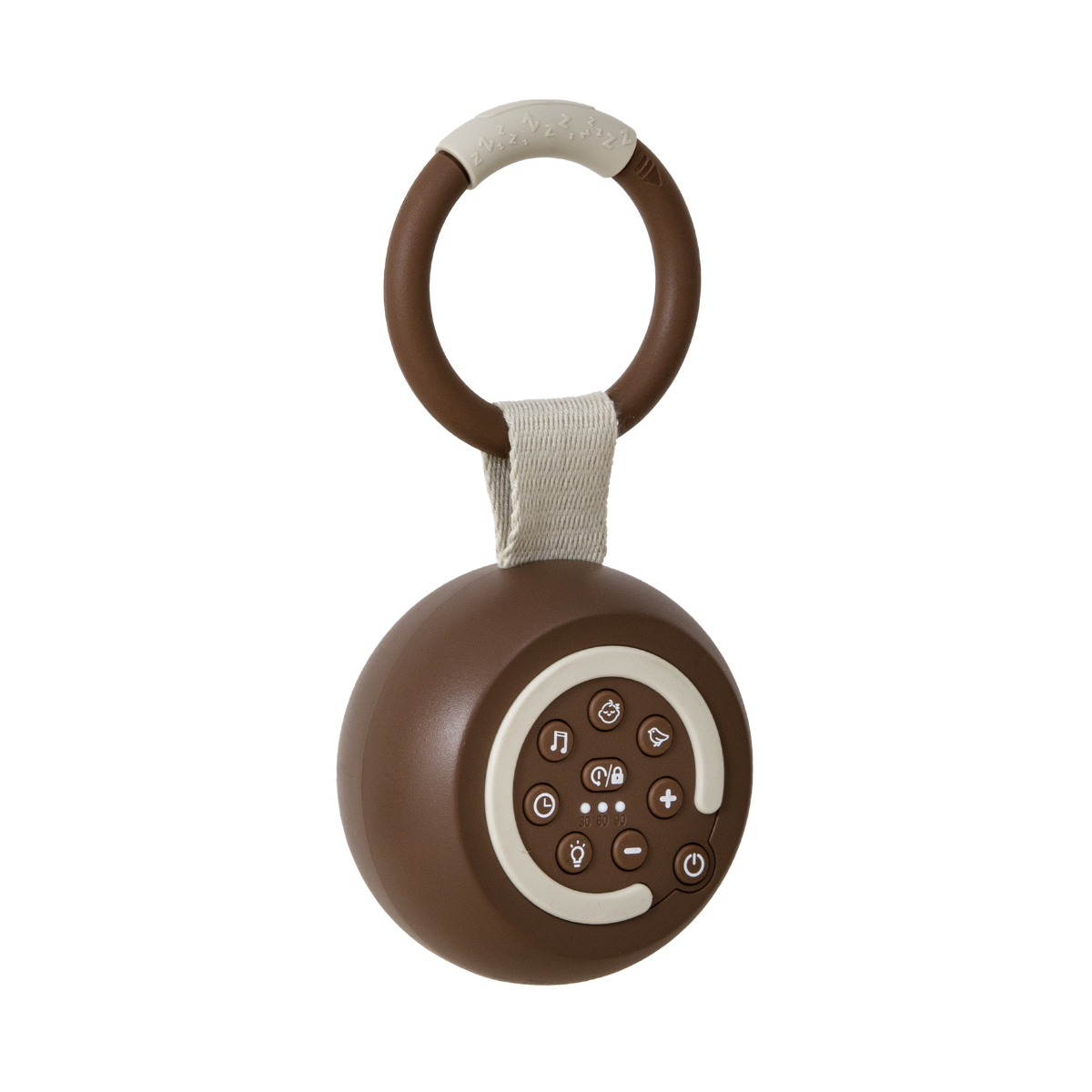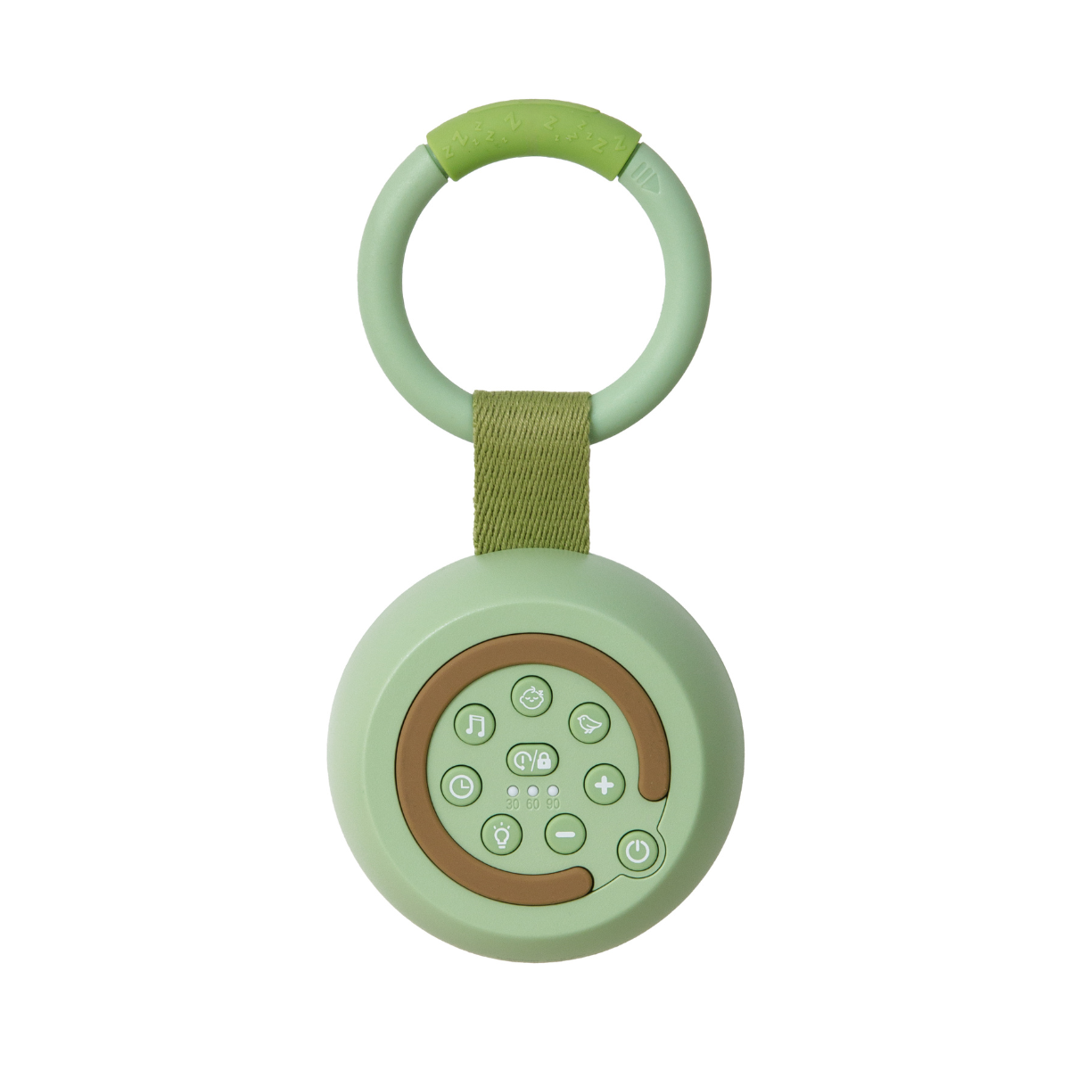 Z łatwością mieści się w dłoni, a dzięki bezpiecznemu pierścieniowi można go wygodnie zawiesić. Idealny do przymocowania do wózka, torebki czy łóżeczka — sprawdzi się doskonale jako pomoc w uspokojeniu maluszka, niezależnie od miejsca.
