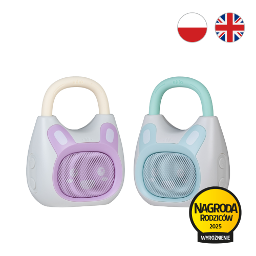 Alilo Pocket Bunny K1 to odtwarzacz MP3 dla dzieci z funkcją Bluetooth, który jest idealnie dostosowany do dziecięcych rączek – nie posiada ostrych krawędzi i jest odporny na upadki i zachlapania. Posiada wgrane polskie i angielskie piosenki, bajki, kołysanki oraz kojące dźwięki, które ułatwiają zasypianie. Funkcja Bluetooth umożliwia odtwarzanie własnych playlist, audiobooków i piosenek. Jest lekki i łatwy w przenoszeniu: można nosić go w ręce dzięki elastycznemu silikonowemu uchwytowi oraz wygodnie zawiesić, dzięki załączonemu pierścieniowi i paskowi. Wbudowany port USB umożliwia nie tylko ekologiczne ładowanie, które zapewni nawet sześć godzin nieprzerwanej pracy, ale i wgrywanie własnych plików w formacie WAV, WMA i MP3. Mimo kompaktowych rozmiarów, Pocket Bunny oferuje zaskakująco dobry i czysty dźwięk. Wypróbuj go w domu, w samochodzie, w przedszkolu i na wycieczce!