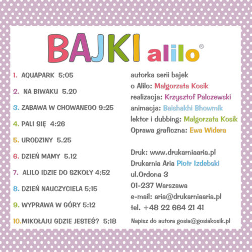 Bajki napisała Małgorzata Kosik – dziennikarka, aktorka, autorka piosenek i bajek dla dzieci.