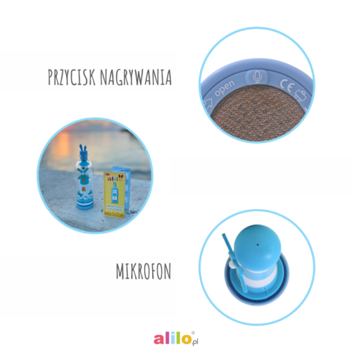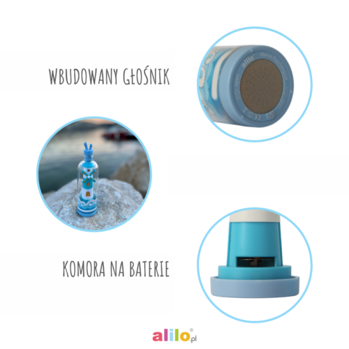 - gdy zdejmiesz gumowy korek (poprzez pociągnięcie za małe uszy w górę) usłyszysz szum morza – domyślny dźwięk (przy pierwszym użyciu) lub ostatnio nagraną wiadomość