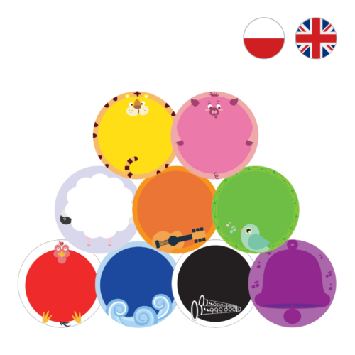 Na odwrocie każdej karty z kolorem znajduje się nadrukowany króliczek z innym wyrazem twarzy. Dzięki temu zabawa kartami może stać się nie tylko nauką kolorów, ale też punktem wyjścia do rozmowy o emocjach… Co więcej, króliczki na kartach można pokolorować – to dopiero zabawa!