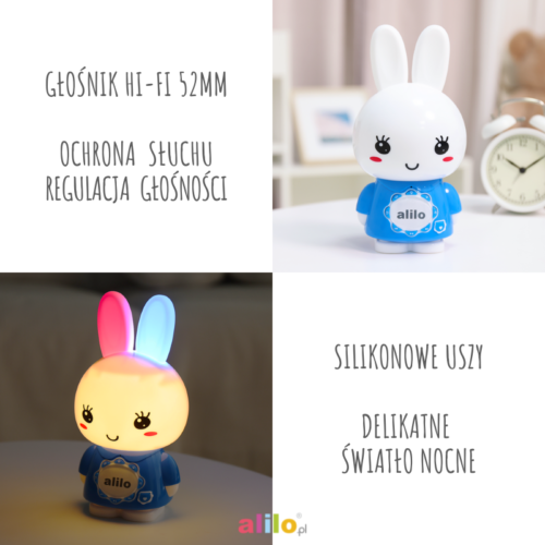 Poznaj Alilo Big Bunny – rewelacyjny odtwarzacz MP3, dyktafon, lampkę i głośnik do komputera dla dzieci w każdym wieku.