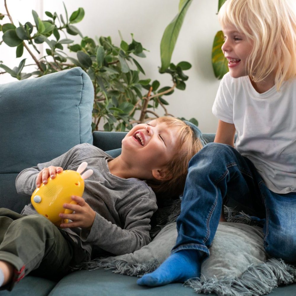 Poznaj Alilo Happy Bunny P1 – najbardziej interaktywną z zabawek Alilo! Ten króliczek uwielbia rozwój muzyczny dzieci i zabawy motoryczne: potrafi uczyć rytmów oraz zna zupełnie nowe gesty. Dotknij jego czoła, aby wybrać jedną z zabaw, która rozwija poczucie rytmu. Naciśnij brzuszek, by wspólnie tańczyć do dźwięków perkusji. Weź króliczka i złap się za ręce, aby razem z dzieckiem dyrygować odtwarzaną piosenką. Ucz malucha kolorów, dzięki świecącym uszkom. A kiedy przyjdzie czas na sen, pogłaskajcie wspólnie króliczka, co włączy słodką kołysankę.