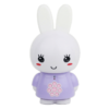 Miękkie uszy króliczka świecą delikatnym światłem zmieniającym kolory dodając otuchy przy zasypianiu.