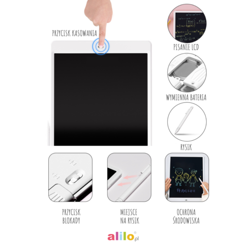 Zawartość opakowania: Tablica Alilo LCD, rysik, bateria
