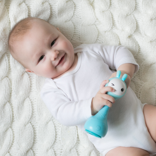 Poznaj Alilo Smarty Bunny – inteligentną elektroniczną grzechotkę z odtwarzaczem muzyki i identyfikatorem kolorów.