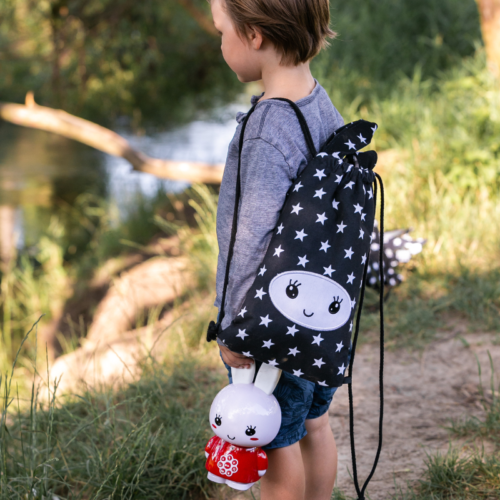 DUŻA (40 cm wzrostu i 30 cm w pasie) – idealna na każdy wyjazd, pomieści jednocześnie króliczka Alilo, klocki i mnóstwo innych skarbów.